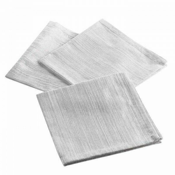 Lot de 3 serviettes de table 40×40 cm coton uni + fils metal argent ELEGANCIA – D INT