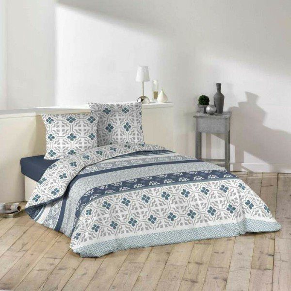 Ensemble de literie 3 pièces, 240 x 220 cm, microfibre imprimée allover, azulero